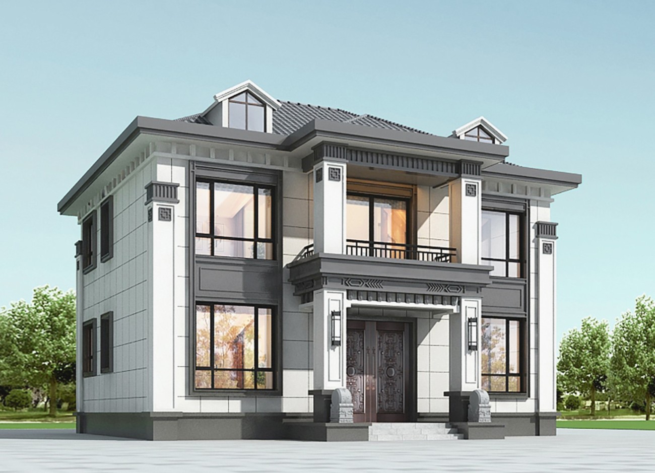 东丽011 两层新中式(15.43x12.66米)-【易设计】